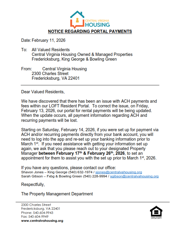 If you have any questions, please reach out to 540-604-9943 and follow the prompts for the Property Management Department, or via email at, [email protected].